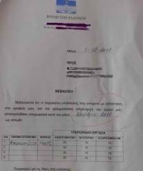 Τι κι αν χρειάσθηκε να μπει πρόβλεψη ακόμη και στο Μεσοπρόθεσμο (γιατί μας πήραν χαμπάρι και στην τρόικα… ) ότι στο Δημόσιο οι υπερωρίες δεν θα ξεπερνούν τις 20 ώρες συνολικά; Όπως φαίνεται στο έγγραφο που δημοσιεύουμε, παρά το τέχνασμα του μοιράσματος της υπερωριακής εργασίας σε τρεις κατηγορίες (απογευματινή, νυχτερινή, εξαιρέσιμες ημέρες), οι ώρες του συγκεκριμένου αποσπασμένου υπαλλήλου σε γραφείο βουλευτή στη Βουλή (για την «γραμματειακή υποστήριξη του έργου του») ανέρχονται στις 45! Κι αυτό συμβαίνει όταν και το Μνημόνιο προέβλεπε προηγουμένως για το Δημόσιο ότι οι ώρες που χρεώνονται ως υπερωριακές εργασίες το απόγευμα, τη νύχτα και τις Κυριακές δεν θα έπρεπε να υπερβαίνουν τις 40.